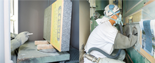 お客様の契約内容に基づき、お墓を加工していきます。最新鋭の自社工場で加工致します。工場見学も可能です。また、徹底した品質管理も行っております。