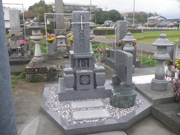 香川県高松市香川町墓地で 庵治中目石9寸三重台墓石を建立させて頂きました