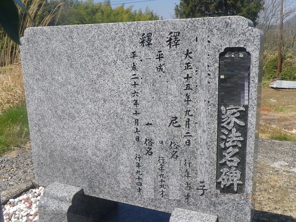 今回はお墓の横にあります、法名碑への彫刻をさせていただきました↗