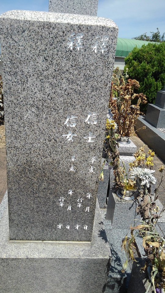 高松市の共同墓地で戒名の彫り入れ工事をさせて頂きました(^o^)