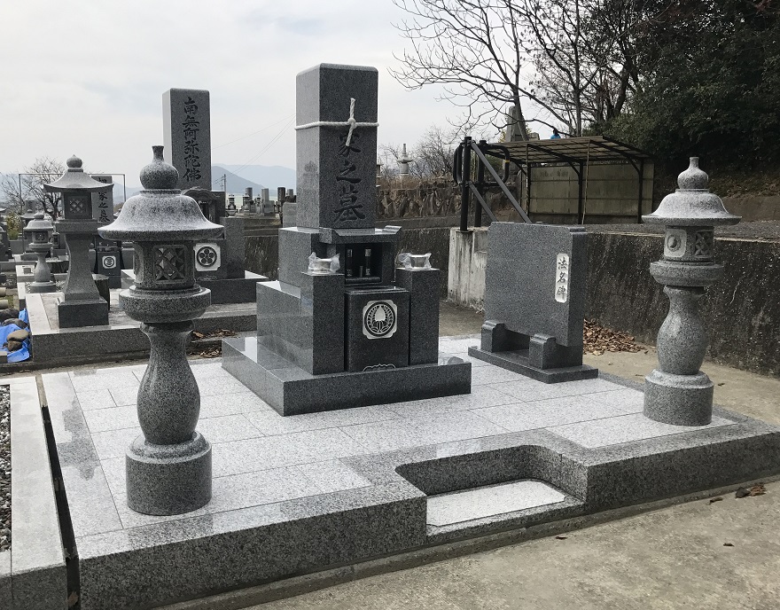 高松市内墓地で庵治中目石9寸墓石を建立させて頂きました