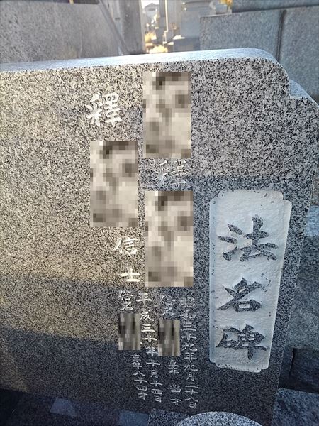 高松市内墓地にて戒名の彫り入れ工事をさせて頂きました