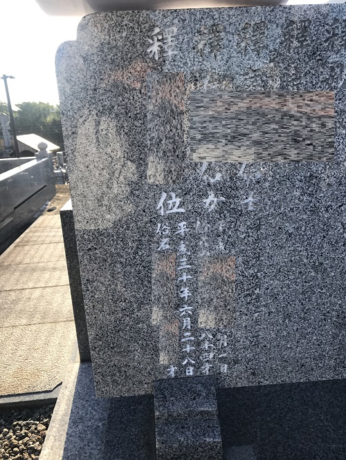 高松市内墓地で戒名の彫り入れ工事をさせて頂きました