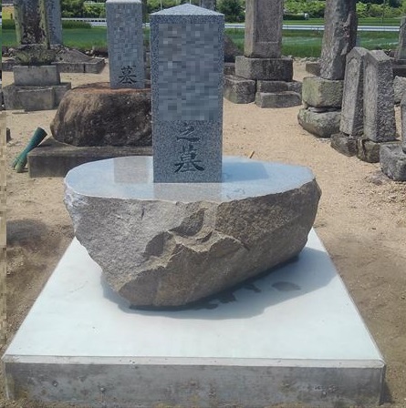 庵治石の自然石を台座に素敵な夫婦墓の完成です