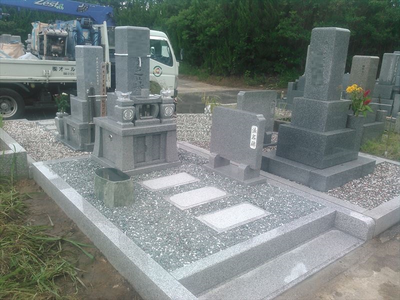 香川県東かがわ市内墓所にて庵治石デザイン墓石を建立と
