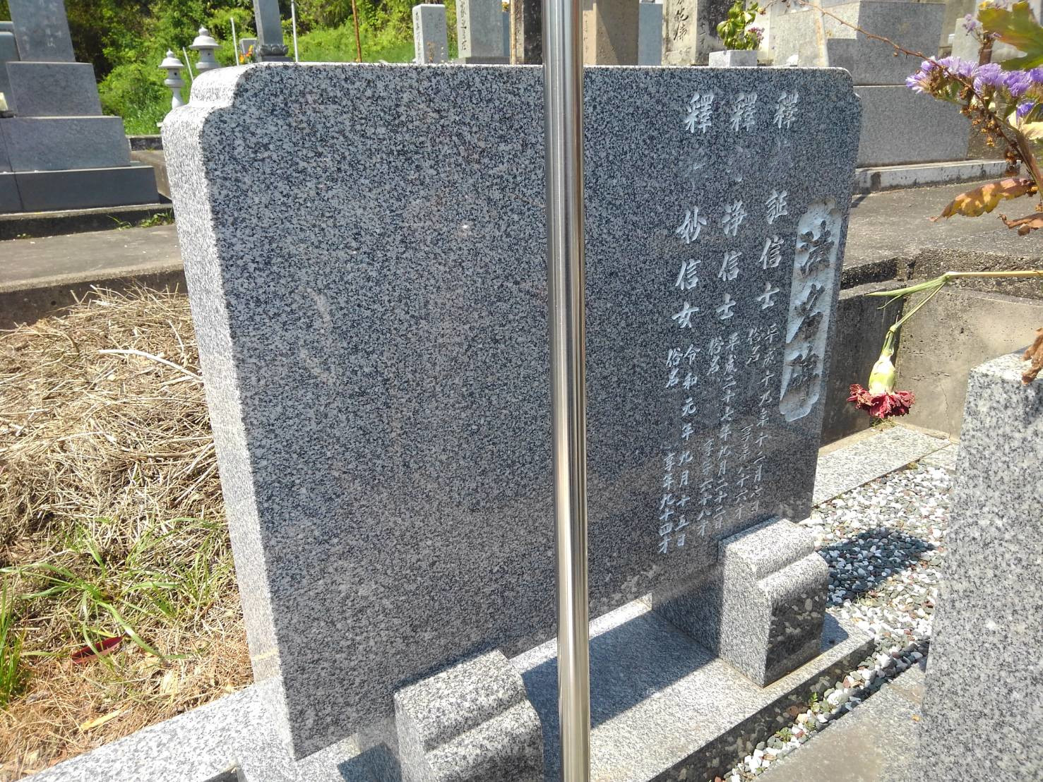 高松市西山崎町墓地で戒名の彫り入れ工事をさせて頂きました
