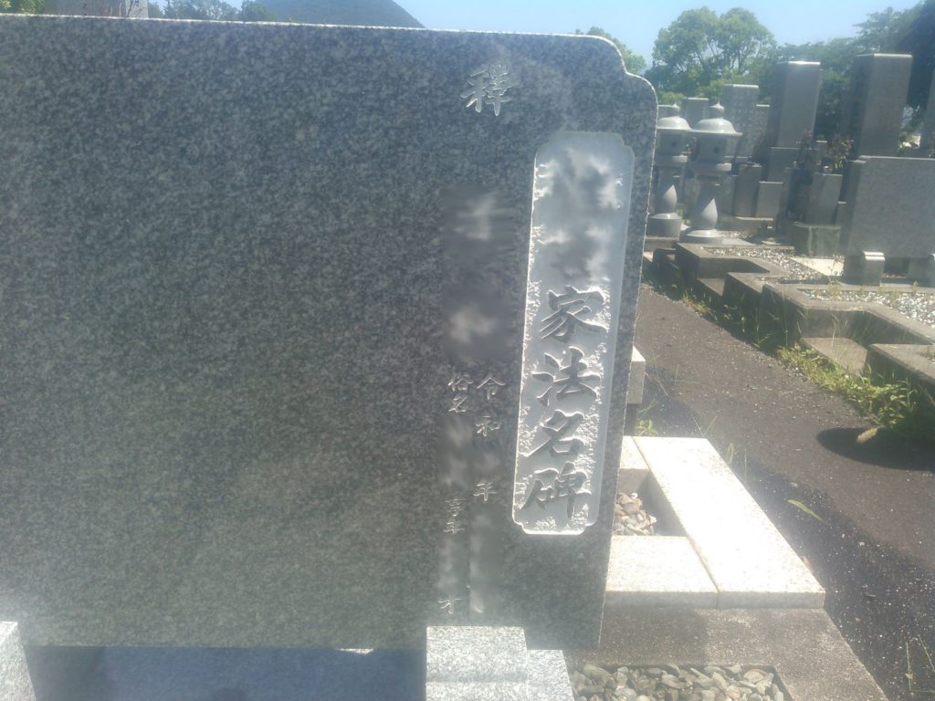 丸亀市内墓地で戒名の彫り入れ工事をさせて頂きました!