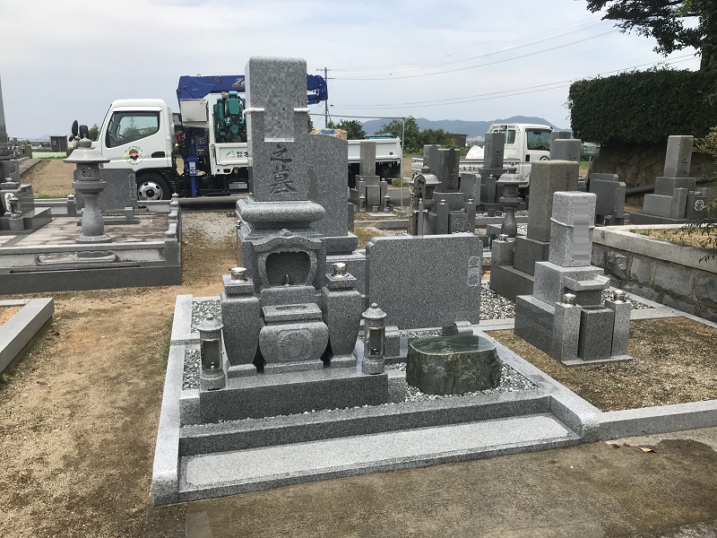 高松市三谷町墓地で庵治細目石デザイン墓石を建立させて頂きました