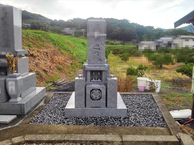 小豆郡内墓地で庵治中目石9寸墓石を建立させて頂きました