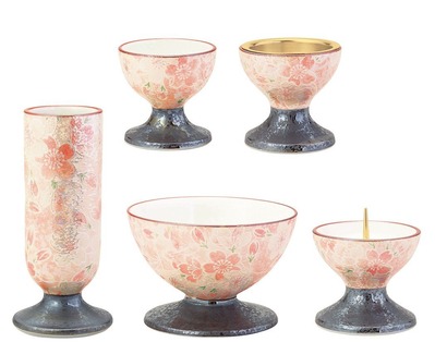 桜の柄が可愛い有田焼きの五具足です(´∀`*)