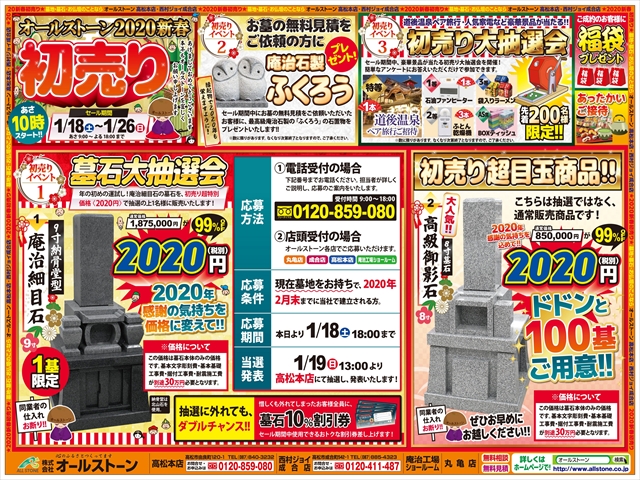 庵治工場ショールーム :12月30日(日)~1月7日(月)までの9日間