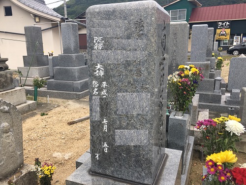 お墓へ故人様を納骨する際、頂いた戒名(法名)をお墓に追加彫刻いたします