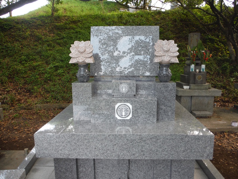 高松市内墓所にて庵治細目石のデザイン墓石を建立させて頂きました