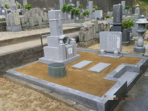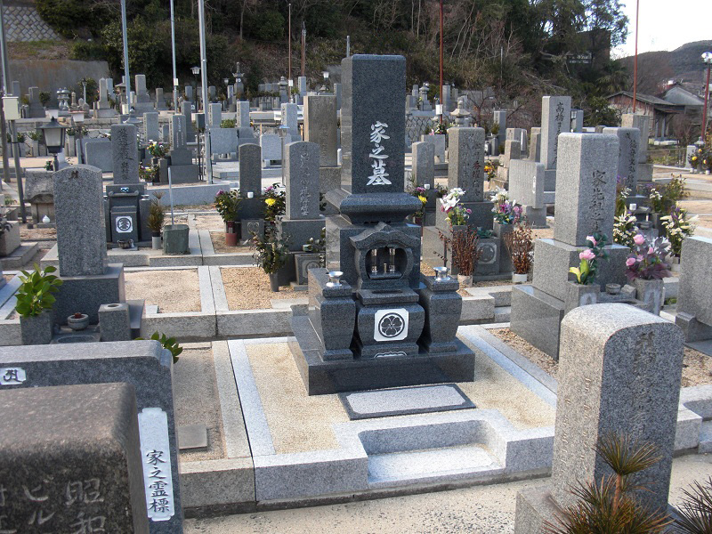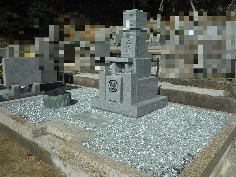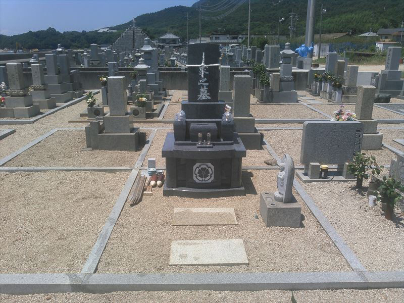 香川県小豆郡小豆島町の墓地で新山石9寸三重台墓石を建立させて頂きました