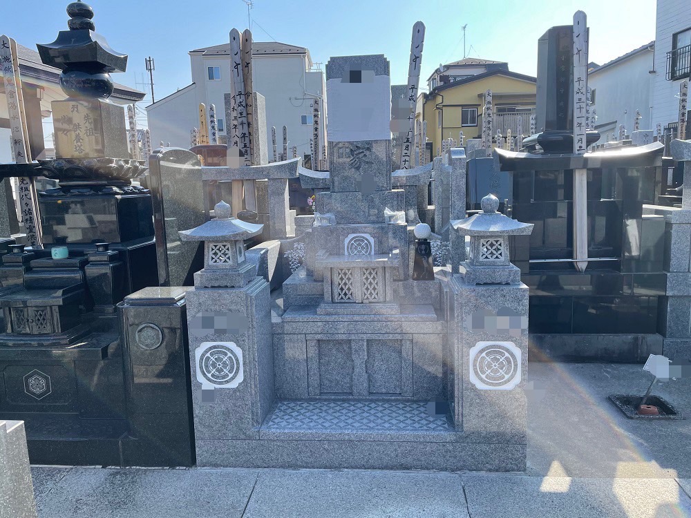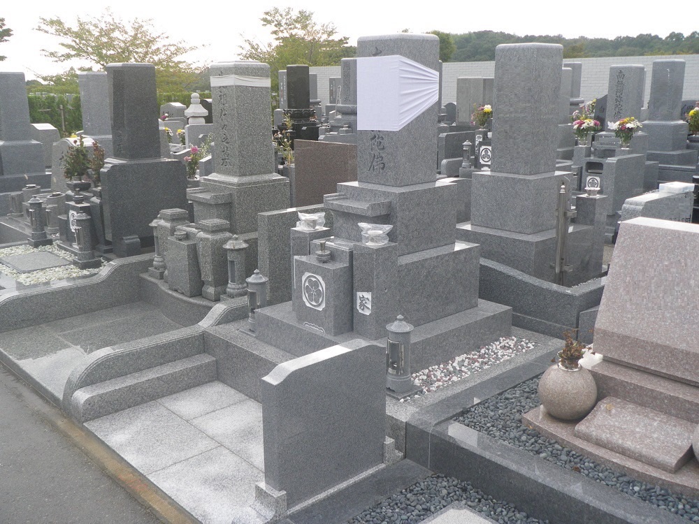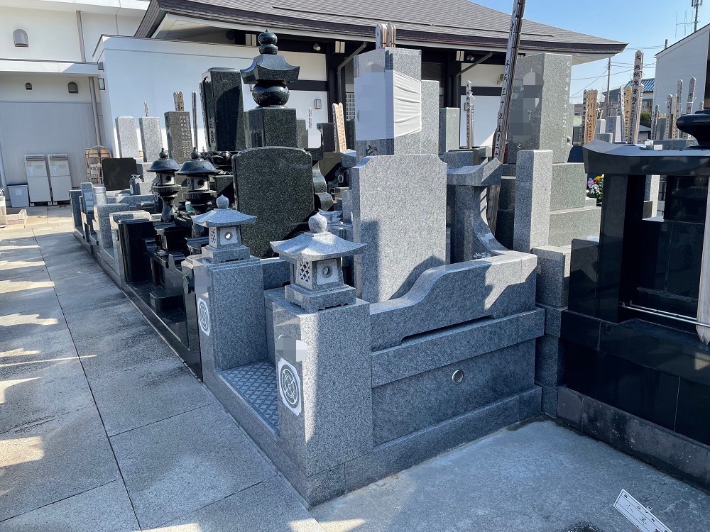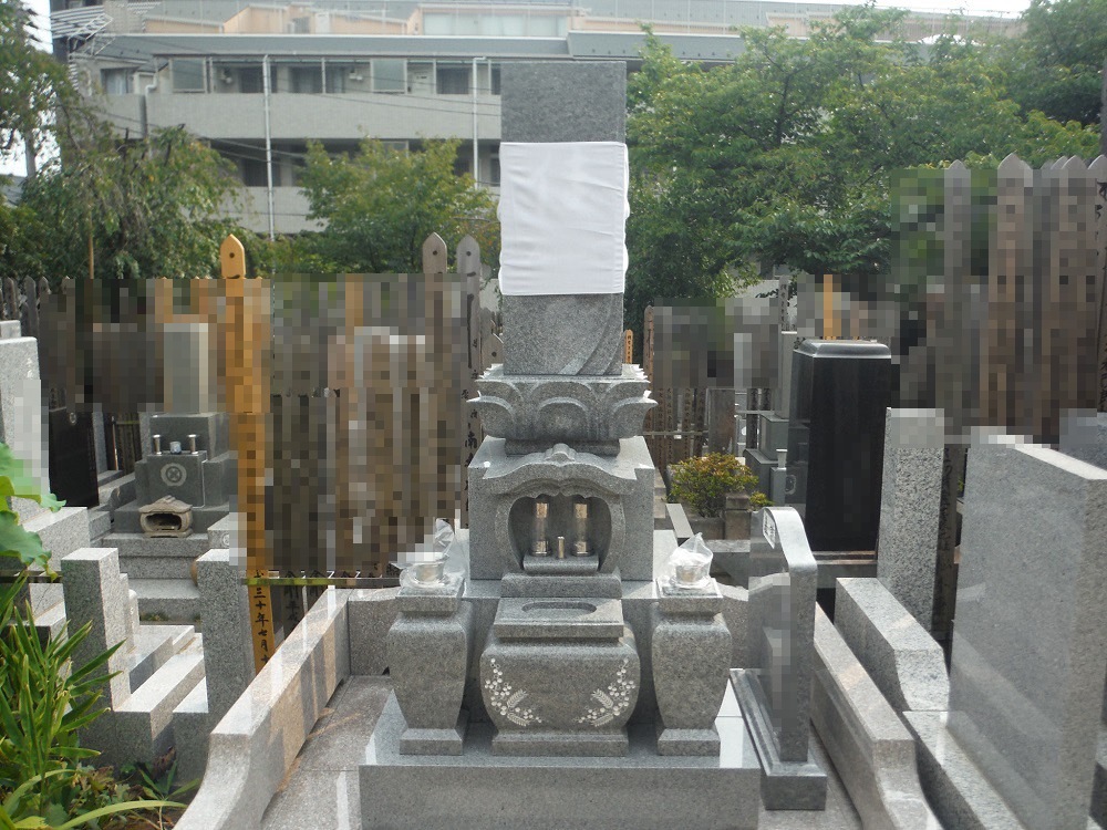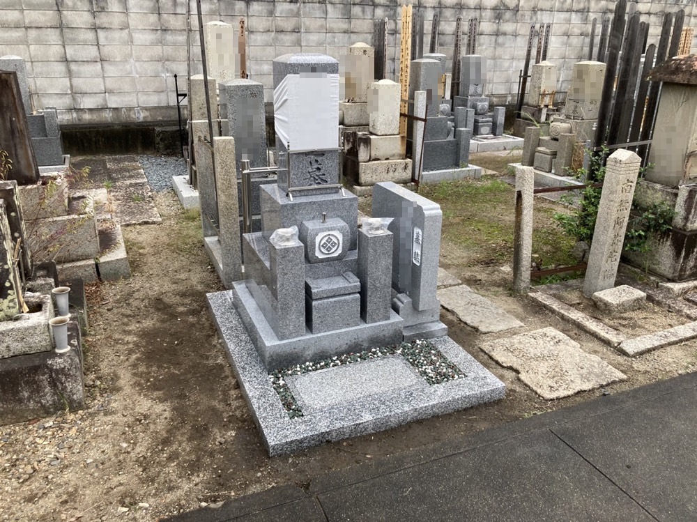 大阪府の寺院墓地に庵治細目石黒口特級の墓石を 建立させて頂きました