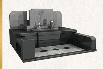 ロイヤルブラック(インド)・白栄石(中国)寸 法: 249cm×199cm×120cm 基本基礎工事、耐震施工、据付工事、文字彫刻、お参り付属品を含む安心価格