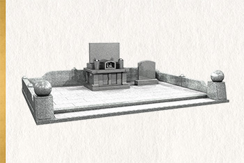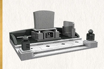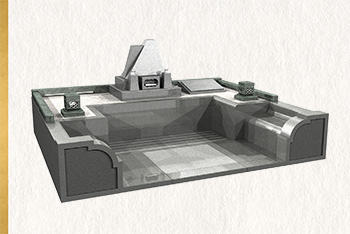 ライトグレー(インド)・オーロラグリーン(インド)寸 法: 350cm×300cm×152cm 基本基礎工事、耐震施工、据付工事、文字彫刻、お参り付属品を含む安心価格