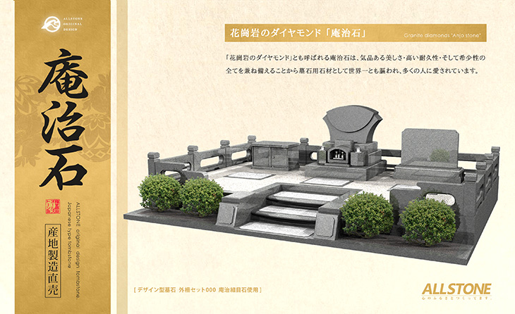 オールストーンの産地製造直売、最高級の庵治石を使用した墓石をご紹介いたします。末代まで受け継がれる大切なお墓は、日本一の銘石・最高級の庵治石を使用することでいつまでも美しい姿を残します。