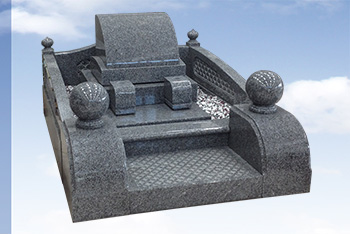 商品名: デザイン型墓石007 石 種: 新山石(中国) 寸 法: 80cm × 70cm × 87cm 基本基礎工事、耐震施工、据付工事、文字彫刻、お参り付属品を含む安心価格
