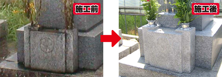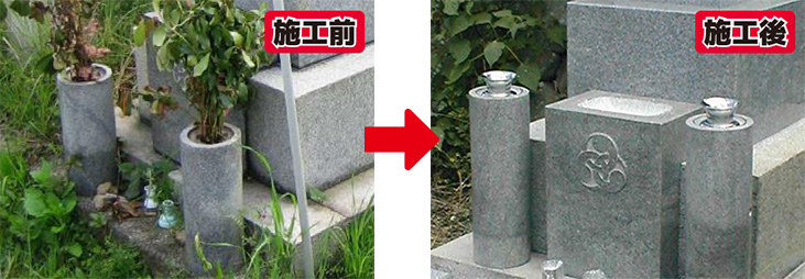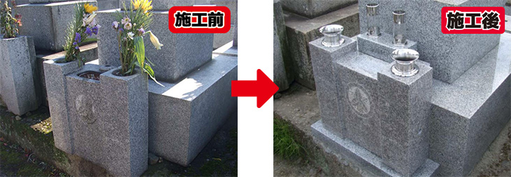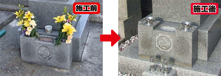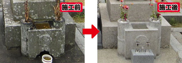 花立ての穴あけ直しと同時に水カなどのクリーニングも行い、見違えるように美しくなりました。