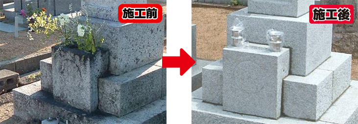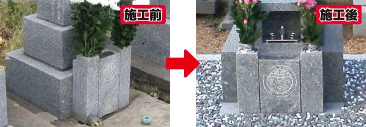 花立ての穴あけ直しとお墓のクリーニングを施し、お墓の雰囲気が明るくなりました。
