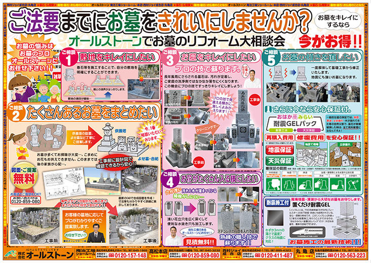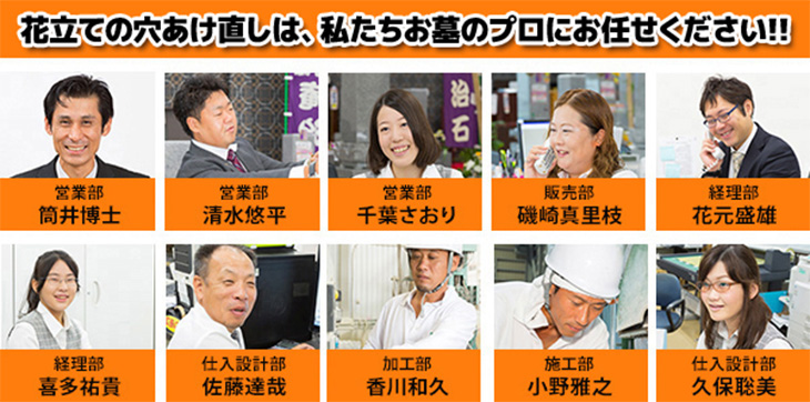 花立の穴が小さい・水抜き穴が無いため汚れた水が溜まり、においが気になる・せっかく供えたお花が すぐ枯れてしまう・・・など、お墓参りの際にお悩みではありませんか?オールストーンでは花立ての穴 あけ直し・水抜き穴の加工・ステンレス製花筒の設置など、お墓参りを快適にする方法をご提案させて いただきます。金額も無料でお見積りもさせていただきますので、お気軽にご相談ください。