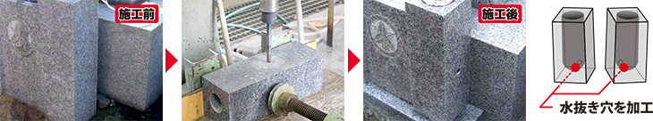 ②庵治工場にて水抜き穴あけの加工をいたします。