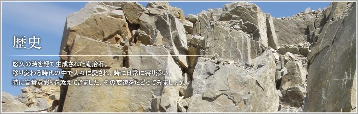 庵治石が初めて史実に登場するのは平安時代。京都の石清水八幡宮の「建武回録記」という古文書に記されています。その内容は、八幡宮の再建にあたり石種30種、個数5000の切石が使用されたというもの。関連する古文書を紐解いてみると、現在の牟礼町の一部が石清水八幡宮の荘園であったとされることから、使用された石材は庵治石だったと考えられます。つまり、庵治石は平安時代後期から採石され、遠く海を隔てた京都までも送り出されていたのです。何百もの船で大きな石を運ぶ作業は非常に大変だったでしょう。それだけの労力を払う価値があると評価されていたことがうかがえます。