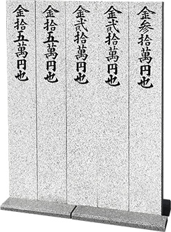 御影石製の寄付板の彫刻・設置工事もオールストーンにおまかせください。オールストーンでは、専門の自社職人が文字の深さや石の表情を大切にしながら丁寧に彫刻を施します。