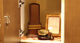 お位牌(御霊)やおりんなどの仏具を供養壇に納めます。