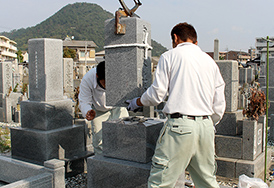 お寺様にお墓のお性根抜き(魂抜き)をしていただきます。付き合いのあるお寺様がいないという方にはお寺様のご紹介もさせていただいておりますので、スタッフまでご相談ください。