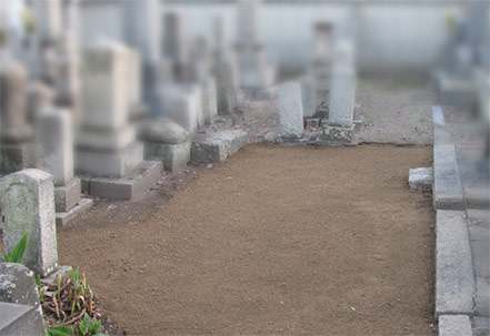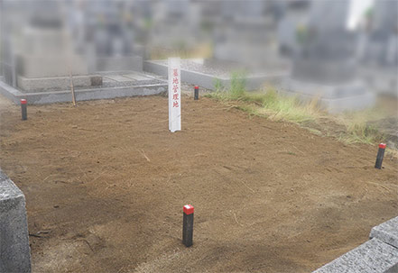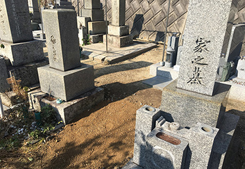 お墓の撤去工事・お墓の処分を行います。撤去後は土を綺麗に整えて整地いたします。