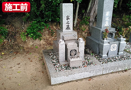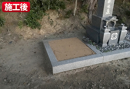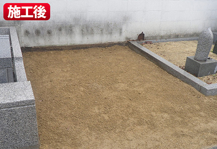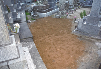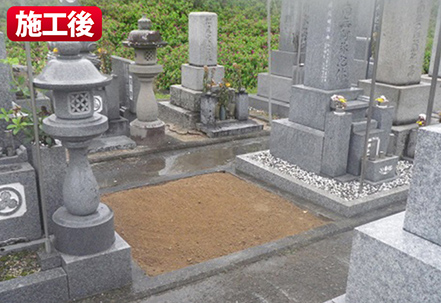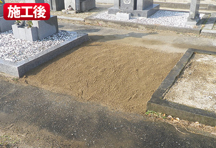お墓の撤去工事・お墓の処分を行います。撤去後は土を綺麗に整えて整地いたします。