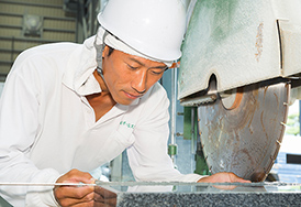 オールストーンでは、お客様の満足を日々追求し、実現するためにご相談・測量・御提案・設計・文字の原稿作成・製造、加工・文字彫刻・基礎工事・据付施工・耐震施工・保証・アフターサービスに至るまで、すべての部門に熟練の自社専門スタッフが責任をもって担当しております。日本一の銘石庵治石の産地で長年にわたりお墓に携わってきたオールストーンだからできるお墓の自社一貫専門システムです。様々な工程を専門スタッフが連携を密にし向き合う事で、きめ細やかなサービスができると考えております。