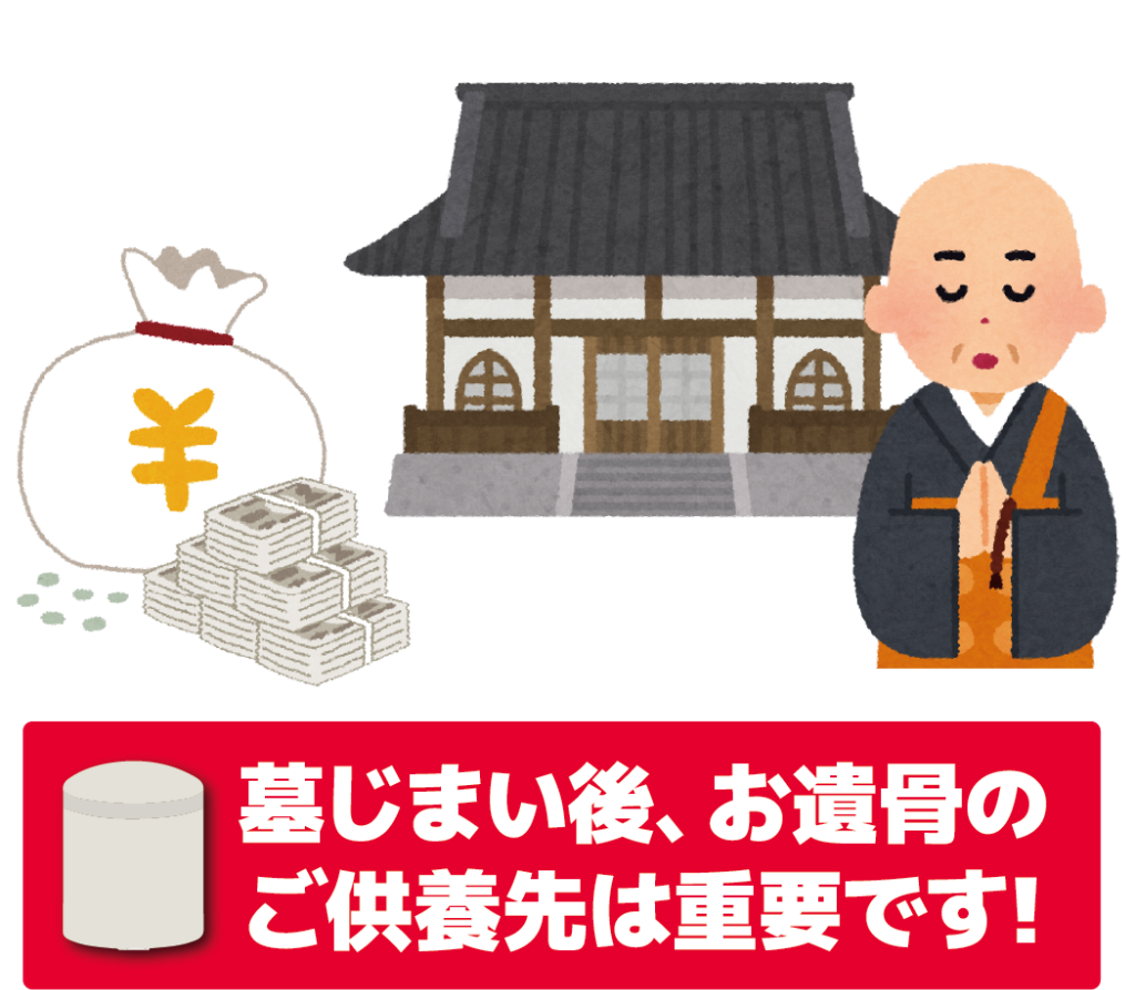 墓じまいをしたあと檀那寺にご遺骨を預けた結果、年間管理費やお盆法要などの法要、お寺への寄付が永代に渡り必要になり、子供・子孫に大きな負担を残してしまった。