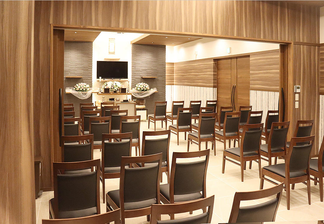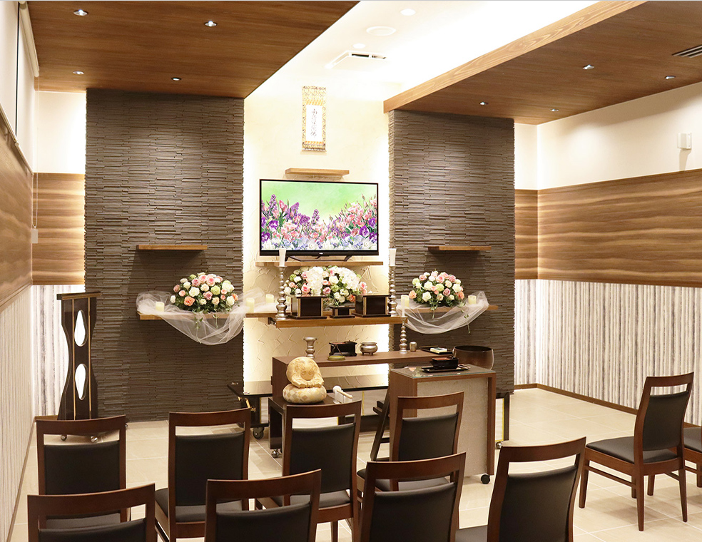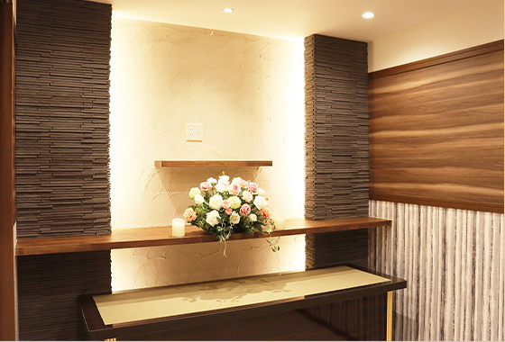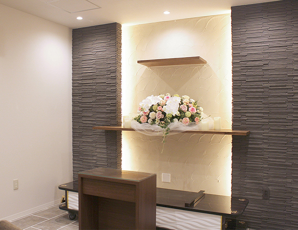 オールストーン葬祭の葬儀式場は、コンパクトで少人数のお葬式に適しており、貸切りでのご利用が可能です。また、ゆっくりお過ごし頂ける控え室を完備しております。
