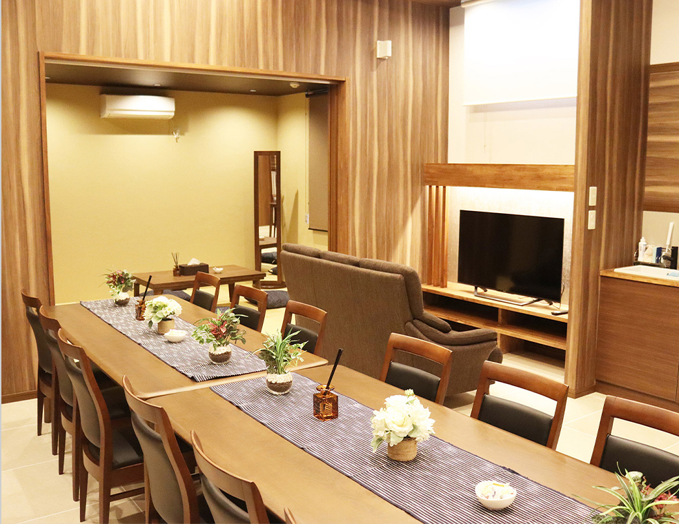 ご家族・ご親族様・縁のあった方々を招き故人様を弔います。この日、式場でのご宿泊も可能です。1日1組貸切で、清潔感のある綺麗な親族控室をご用意しておりますので、ご自宅のようにゆったりと寛げます。