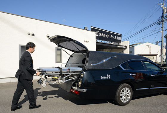 まずはオールストーン葬祭(0120-595-909)にお電話ください。24時間365日対応していますので、病院・ご自宅で亡くなった場合は寝台車を手配し、最短30分でお迎えに上がります。葬儀社をご検討中の方も、ご搬送のみのご依頼も可能ですので、まず先にお電話ください。