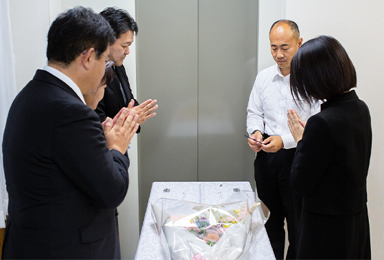 ご自宅にご安置した場合は、自社スタッフがドライアイスの交換に伺います。季節や体格によってドライアイスの量を増やしたり、保冷度を保つためにご納棺をおすすめするなど、お体の状態を確かめて適切な処置を行います。