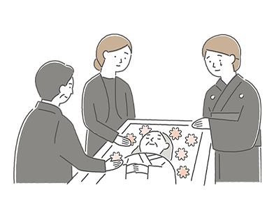 ご安置後、ご家族様のご負担にならない時間で、葬儀の日程、プラン内容、お寺様の手配に至るまで、ご希望をお伺いしながら具体的に決めていきます。お見積もりは1円単位までご提示いたしますので、気になる点などございましたら、何なりとお申し付けください。