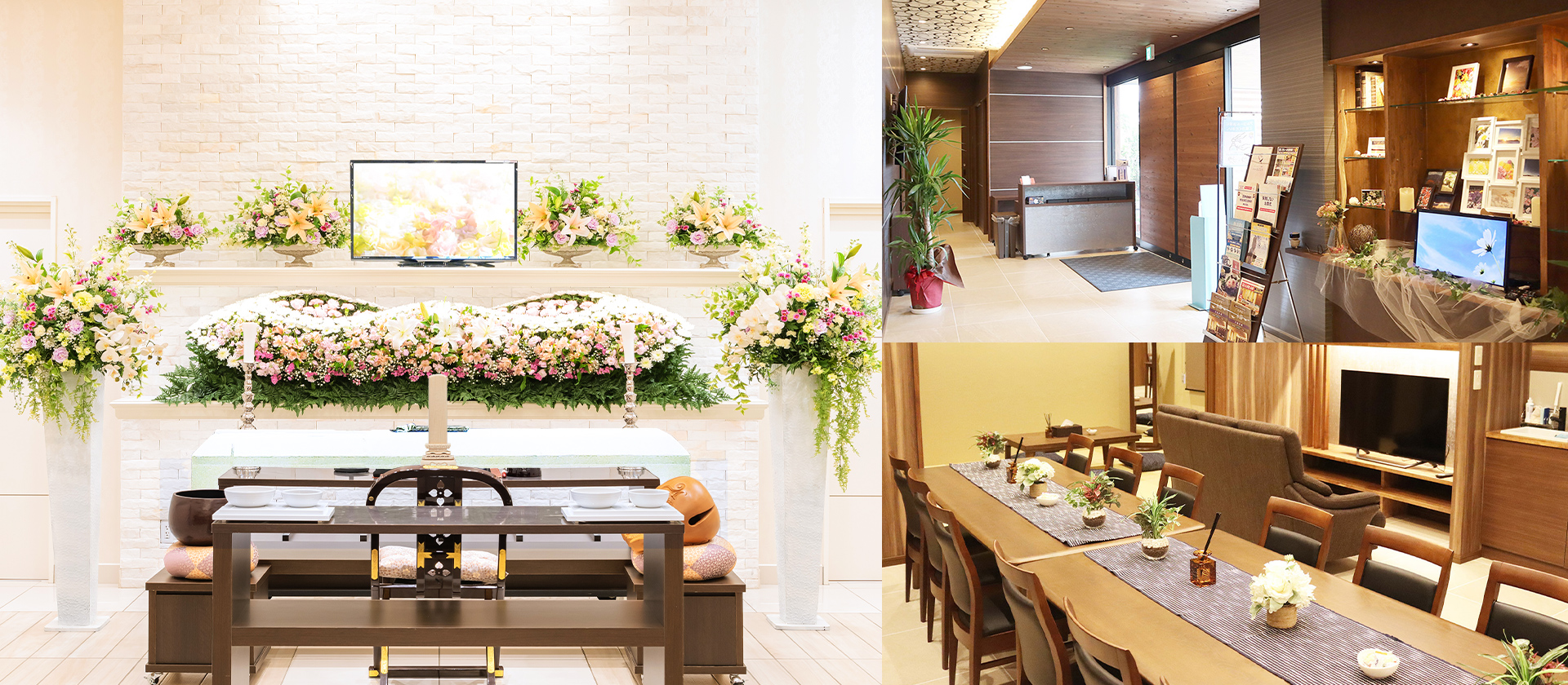 オールストーン葬祭の葬儀式場は、コンパクトで少人数のお葬式に適しており、貸切りでのご利用が可能です。また、ゆっくりお過ごし頂ける控え室を完備しております。