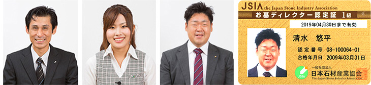 オールストーンでは、日本石材協会が認定する資格である「お墓ディレクター」1級・庵治石のプロが厳選した最高の庵治石を提供いたします。