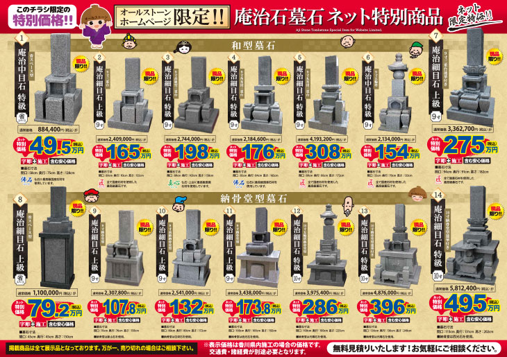 庵治石の墓石をお探しの方(お買い得庵治石)