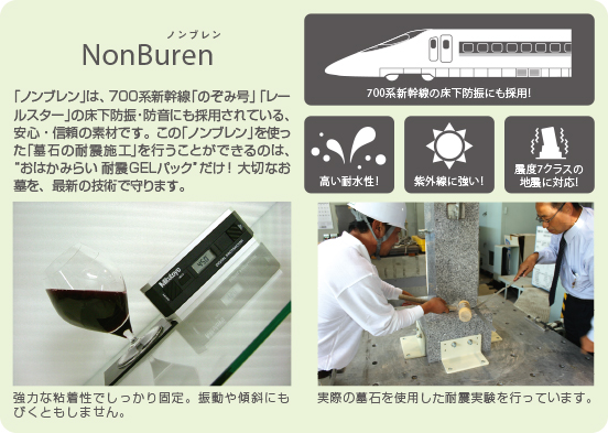 「おはかみらい耐震GELパック」では、新素材の耐震ゲルを使用して耐震面を強化。