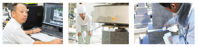 下請けなどは一切使用しておりません。ご相談から設計・加工・施工、アフターサービスに至るまで全て専任のスタッフが責任をもって担当しております。ひとりのお客様、ひとつのお墓に対して自社スタッフ全員が向き合うことで、きめ細かなサービスができると考えます。