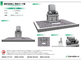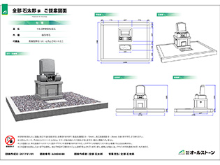 合成図面は実際の墓地にお客様のご要望のお墓を合成しますので、工事前に完成イメージが確認出来るので、お客様に大変御満足頂いております。設計に関してはお客様がご満足いただけるお墓が完成するまで何度でも変更作成させて頂いております。また図面専門スタッフは2名おりスピーディーに最高の図面を作成できることもオールストーンの自社一貫サービスの特徴の一つです。