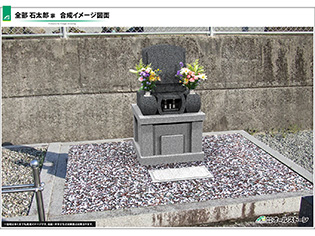 - 墓地の写真に3DCADを合成した、合成イメージ図です。完成時の様子をリアルに再現することができます。