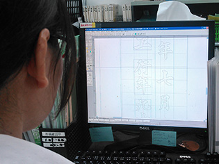 - お客様と彫刻内容の打ち合わせをし、文字原稿専門のスタッフが丁寧にデータを作成していきます。