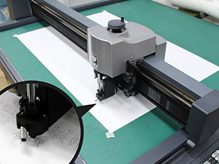 - カッティングプロッターという機械で、実寸大の精密な文字原稿を作成します。