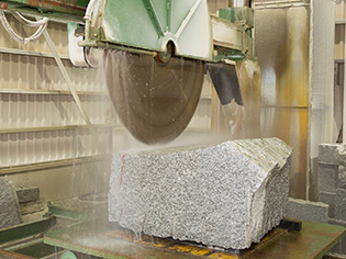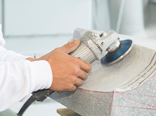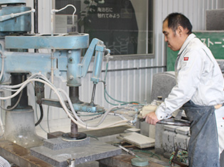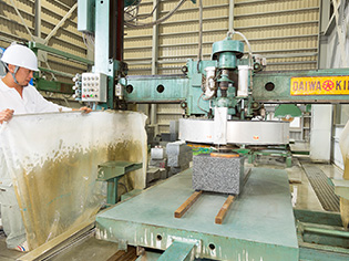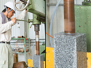 - 【削る】熟練した石職人が庵治石の目合い・風合い・キズ・割れ等、様々な石の状況を見極めて切削加工を施します。